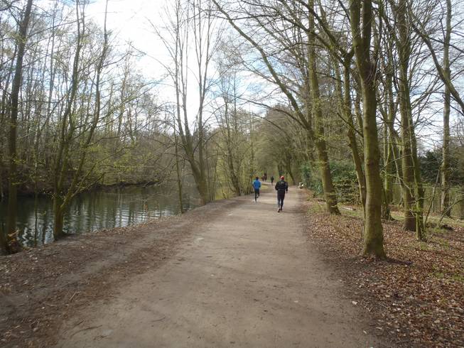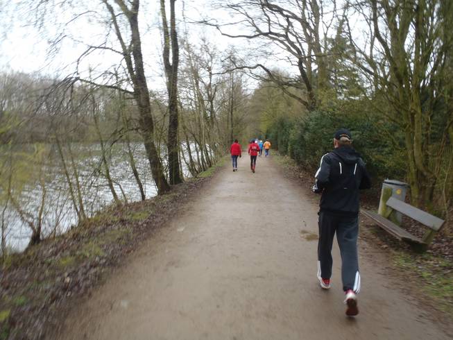 Runde 2 / Kilometer 6,5 9.37 Uhr Auf der einen Seite kaltes Wasser und auf der anderen Seite der Friedhof. Aber der Weg dazwischen ist schön. |