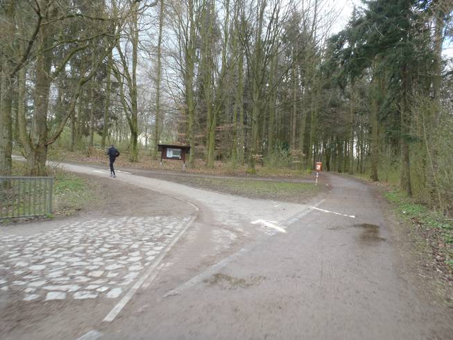 Runde 8 / Kilometer 30,5 11.52 Uhr Hier durch das Wäldchen geht auch so eine Steigung, die man erst in der zweiten Hälfte des Rennens spürt. Da vorne rechts geht es dann langgezogen bergauf... |