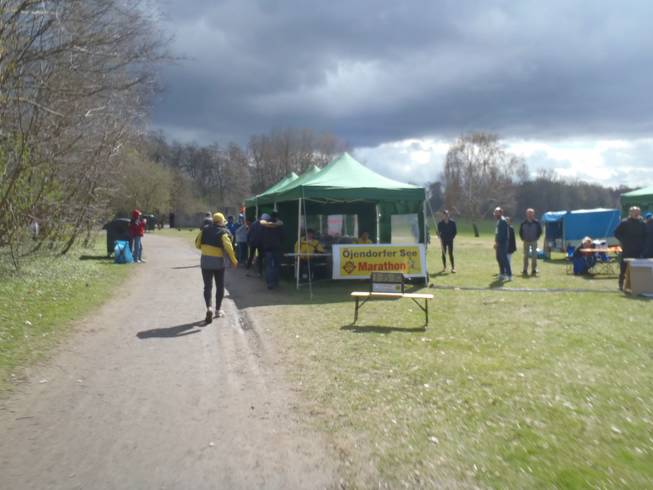 Öjendorfer Park, 8.27 Uhr Wie immer war zu meinem Eintreffen schon alles fertig aufgebaut. Die Frühstarter waren ja auch schon seit 8.00 Uhr unterwegs. |
