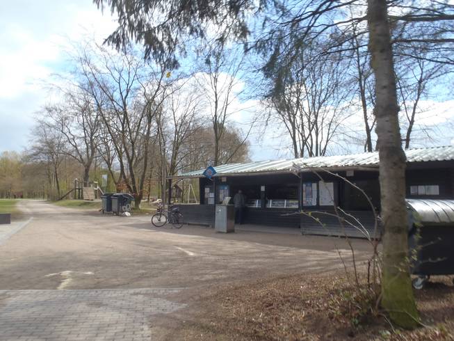 Runde 11 / Kilometer 40,8 12.49 Uhr An dem Kiosk könnte man sich auch verpflegen. Der eine offizielle Verpflegungs-stand (man läuft ja alle 3776 Meter dran vorbei) reichte aber locker aus. Wie immer ist es ja mehr ein Buffet. |
