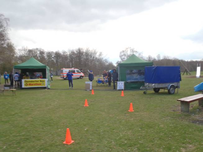 Barsbüttel, 8.11 Uhr Wenn man mit dem Bus anreist, dann ist der kürzeste Weg ein kurzer Abstecher aus Hamburg raus nach Barsbüttel. Der Marathon fand am Ostersamstag statt. |