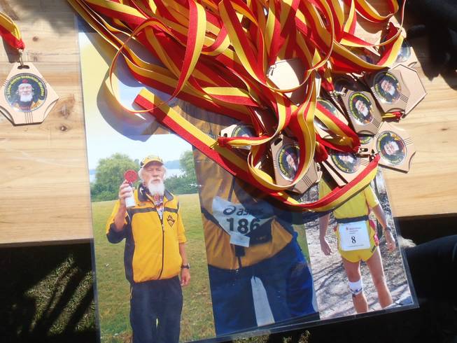Finish / Kilometer 42,195 13.07 Uhr Nach dem Lauf mußte ich mich erst einmal sammeln. So einen heftigen Einbruch so spät im Marathon war ganz ungewöhnlich. Aber es dauerte nicht lange, bis es mir wieder besser ging. Hier die Medaillen zum Lauf mit dem Fotos des Namensgebers und Ausrichter der ersten 30 Öjendorf-Marathons. Lothar Gehrke verstarb leider am 20.03.2010. |