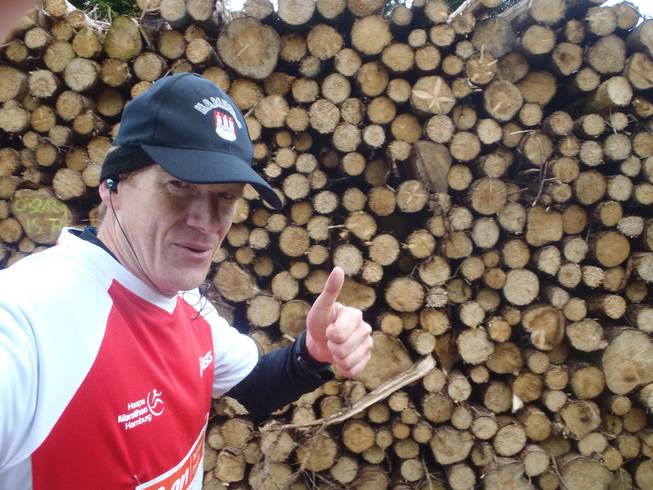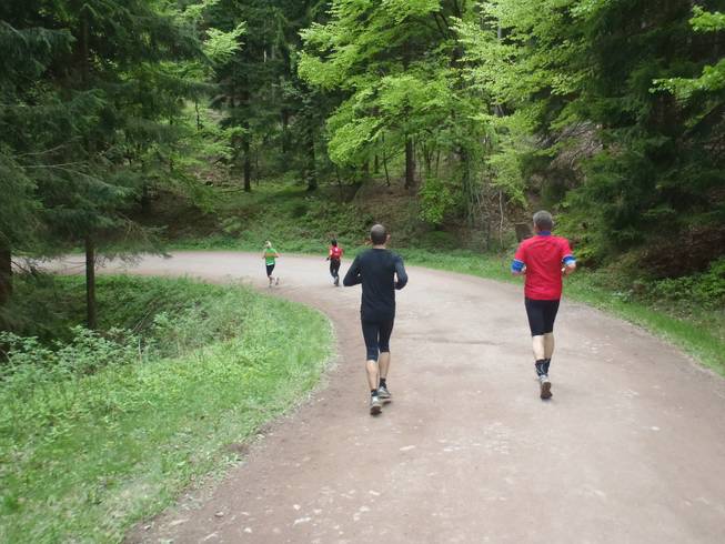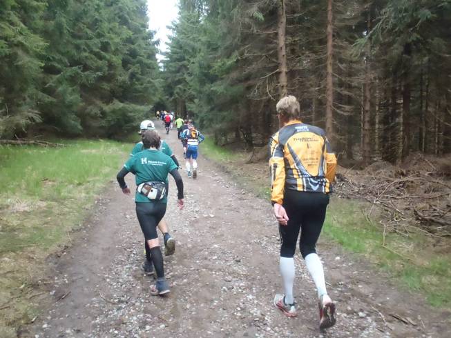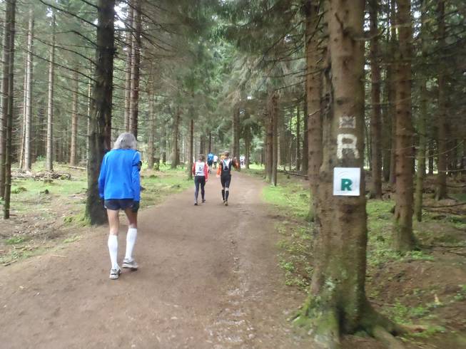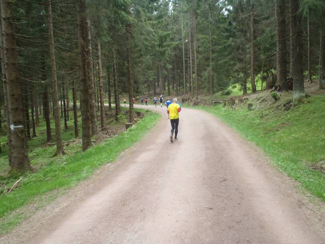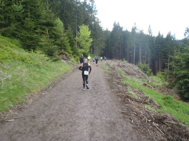 Rondell 12.49 Uhr / Km 56,8 Nun ging es an die letzte große Schwierigkeit des Tages. 147 Höhenmeter noch bis zum höchsten Punkt des Laufes. Leider geht es zwischendurch auch immer mal wieder bergab, was die Sache nicht wirklich erleichtert. |