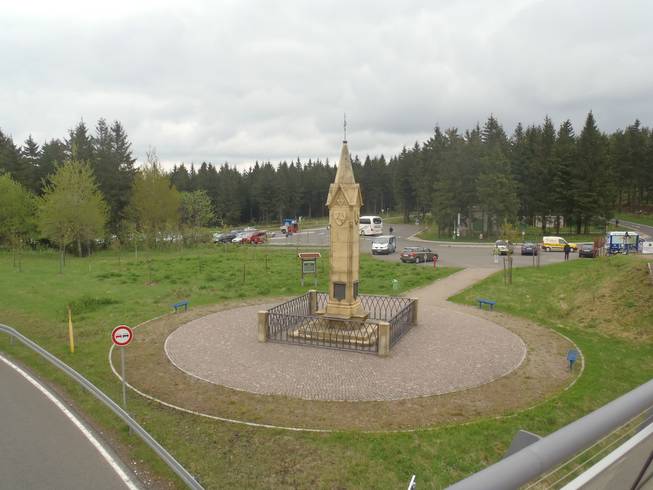 Rondell 12.47 Uhr / Km 56,5 An der Kreuzung des B247 mit dem Rennsteig steht dieses Denkmal, welches an den Straßenbau von 1830 bis 1832 erinnert. Inschrift (unter anderem): |
