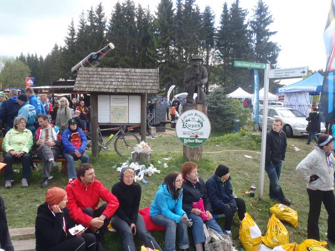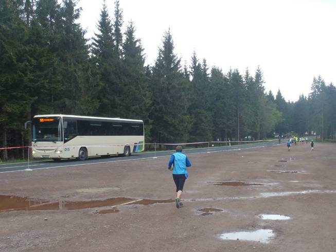 Schmiedefeld 16.10 Uhr Eine Frage beschäftigte mich aber am meisten: warum standen die Shuttle-Busse zurück zu den Start-orten ewig weit und einen endlos langen schmerzvollen Abstieg entfernt, wenn die Autos der Zuschauer direkt hinter dem Zielraum parken durften??? |