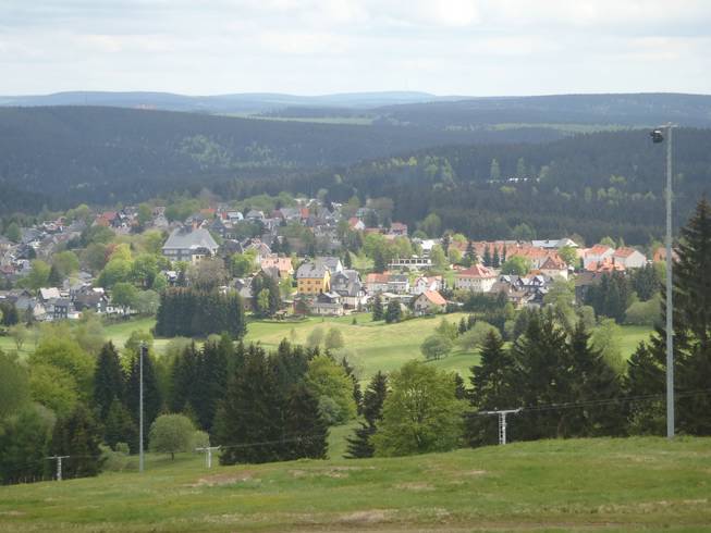 Eisenberglift 14.21 Uhr / Km 69,8 Irgendwo da unten zwischen den ganzen Häusern ist das Ziel. Aber wo? |