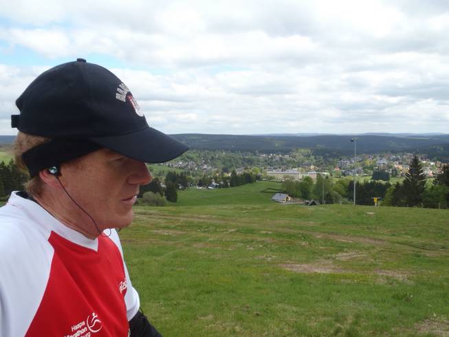 Plänkners Aussicht 13.24 Uhr / Km 61,77 Geschafft! 974 Höhenmeter. Der höchste Punkt des Rennsteiglaufes war endlich erreicht. |