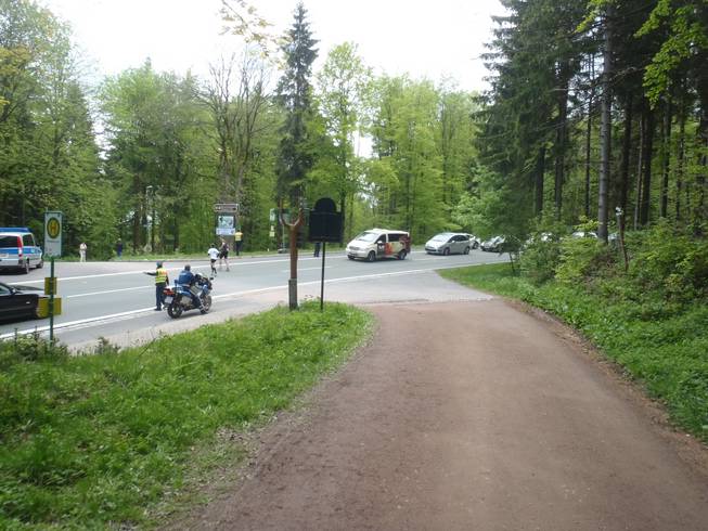 Rondell 12.47 Uhr / Km 56,5 Vom Grenzadler ging es gut 70 Höhenmeter bergauf und 80 wieder runter. Auf knapp zwei Kilometern. |
