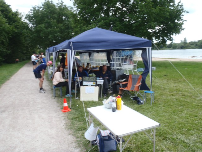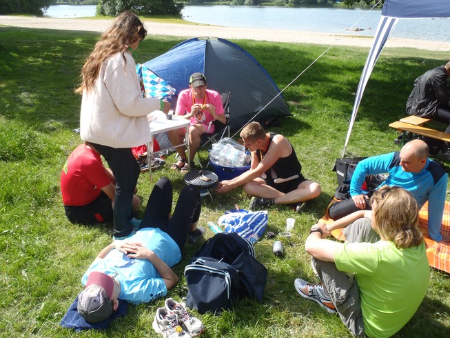 Eichbaumsee Wie immer bei Marathons des 100 MC gibt es Ver-pflegung satt. Alles da. Nur eben keine Würstchen. Da muss man sich selbst helfen (siehe oben). |