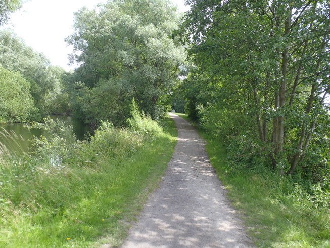 14.24 Uhr / Runde 15 Km 38,5 Der Blick auf die Süderelbe. Die südliche Hälfte der Runde verläuft ja im Grunde auf einer schmalen Landstrich zwischen dem Eichbaumsee und der Süderelbe. So richtig auffallen tut das allerdings nicht. |