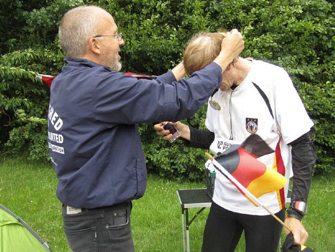 14.46 Uhr / Runde 16 Km 42,195 Und da bekomme ich auch meine verdiente Medaille. (Foto: Hans-Jürgen) |