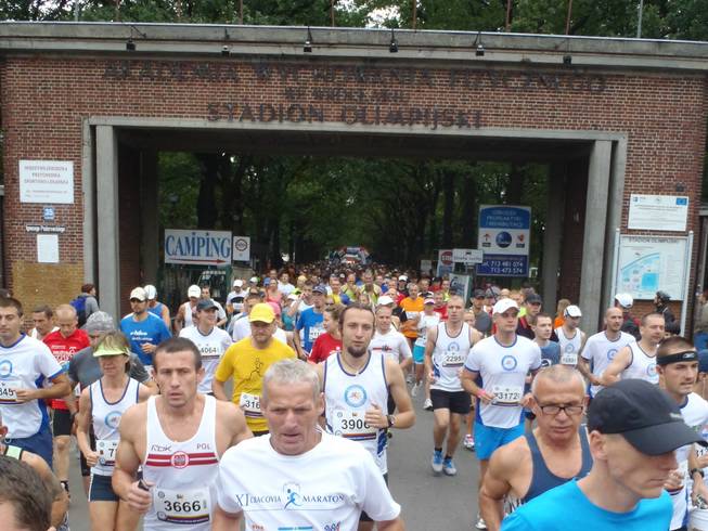Wrocław Stadion Olimpijski 9.01 Uhr / Km 0,1 3900 Läuferinnen und Läufer waren am Start dieses reinen Marathons. Andere Strecken wurden nicht angeboten. |