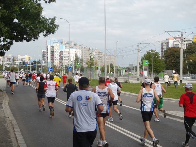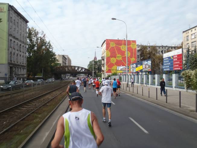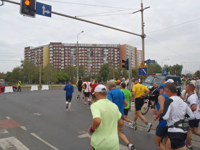 Pilczycka 10.23 Uhr / Km 15,5 Es folgte der Lauf durch die Hochhausstadt Kozanów. Nicht gerade die hübscheste Ecke von Wrocław, aber mir von diversen Besuchen gut bekannt. |