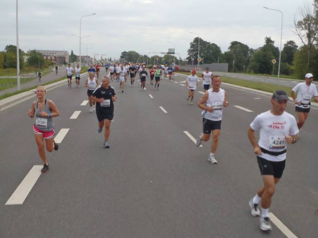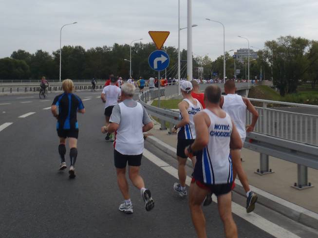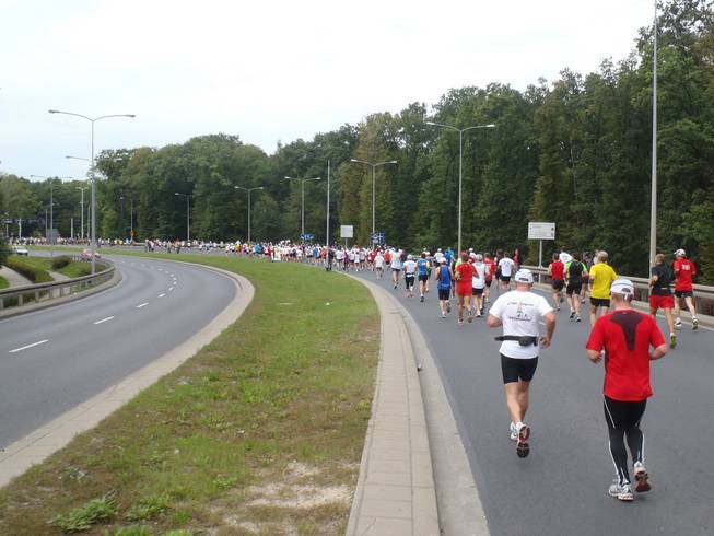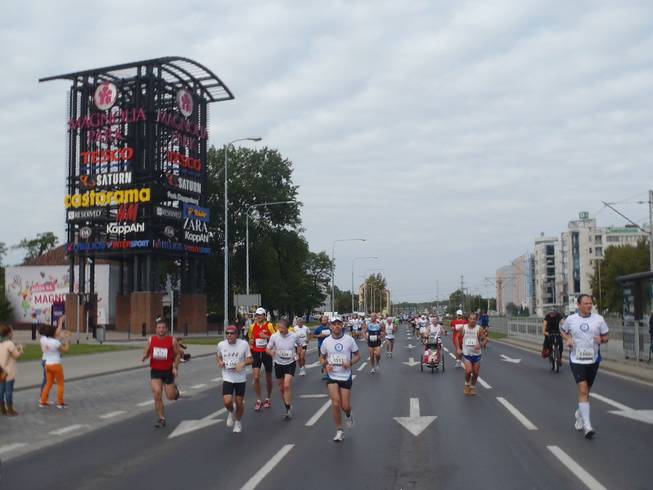 Obwodnica Śródmiejska 10.08 Uhr / Km 12,5 Ich merkte mein Tempo auch daran, daß ich nun längst in meinen üblichen Überhol-Modus gefallen war, in dem ich zumeist andere Läufer überholt, dabei aber selten (bis nie) selbst überholt wurde. |