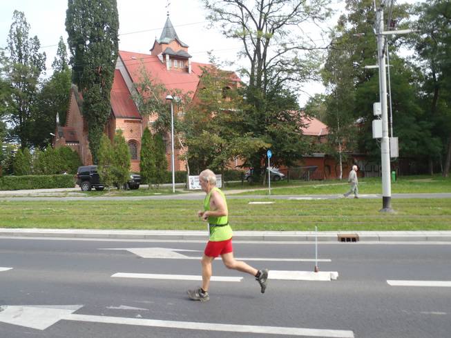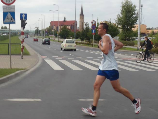 Kazimierza Wielkiego 11.15 Uhr / Km 25,1 Gibt fraglos hübschere Laufstile, aber so lange ich ins Ziel komme... Foto: |
