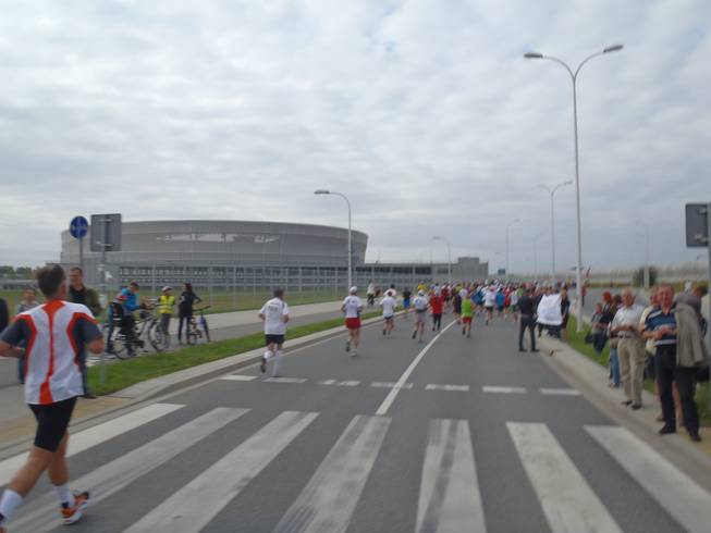 Waicińska 10.38 Uhr / Km 18,0 Das Stadion war nun einmal umrundet. Von der Südseite sah es aber auch nicht anders aus. |