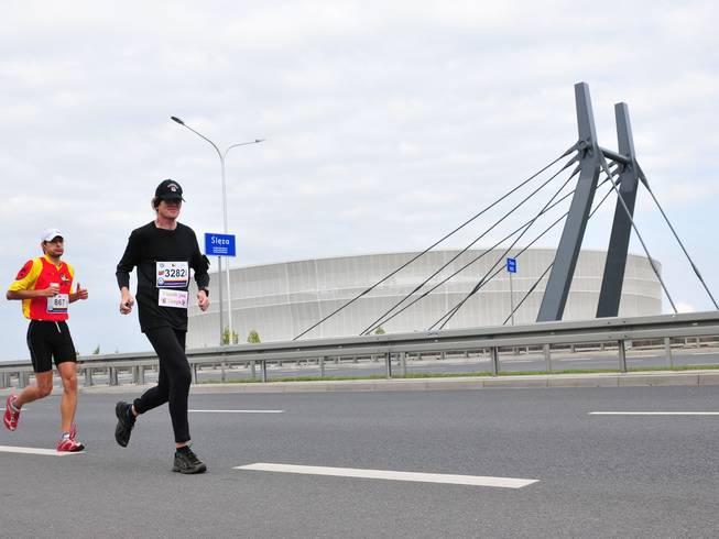 Wrocław Stadion Olimpijski 9.00 Uhr / Km 0,00 Und los ging es. 42,195 Km Wrocław lagen nun vor mir. Foto: |
