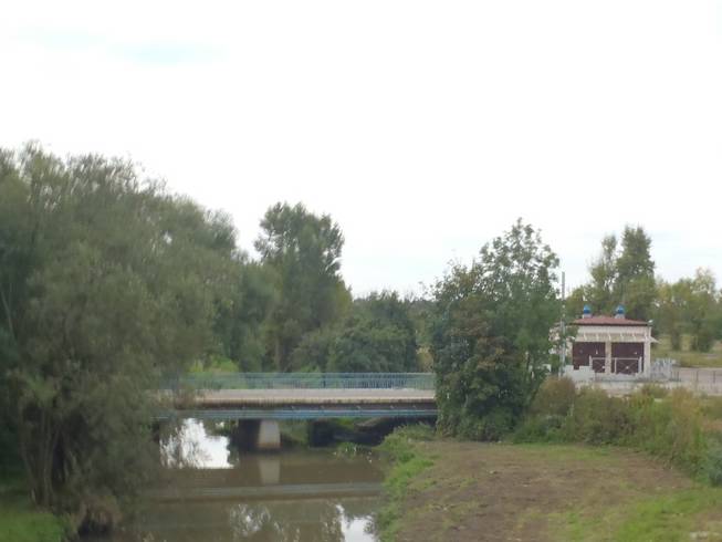 most Pilczycki Nowy 10.40 Uhr / Km 18,5 Und so sieht der Fluß Ślęza hier aus. Leider kann man hier mal gerade nicht am Ufer entlang laufen. Naja, der Marathon ging es an eine andere Richtung. |