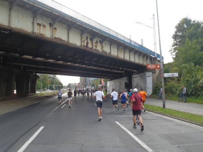 Obwodnica Śródmiejska 9.52 Uhr / Km 9,5 Das war nicht der schönste Teil des Kurses. Aber die Vorfreude auf die Brücke wog das wieder auf. |