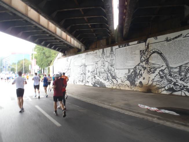Lotniccza 11.04 Uhr / Km 23,0 Comics unter der Brücke. Oder Kunst. Wer weiß. Ich konnte es nicht lesen. |