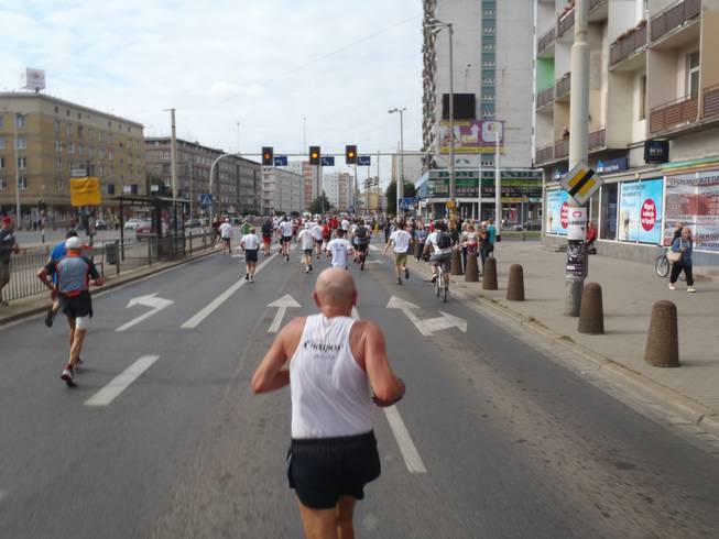 Pilczycka / Park Zachodni 10.18 Uhr / Km 14,5 Für Läufer aber wohl das Wichtigste: Laufen konnte man völlig unbehindert. Wenn man mal von dem einen oder anderen Kamikaze-Taxi absieht. Immerhin hatte man diesmal keines davon auf mich persönlich angesetzt. Das nenne ich immerhin einen Fortschritt. |