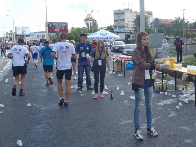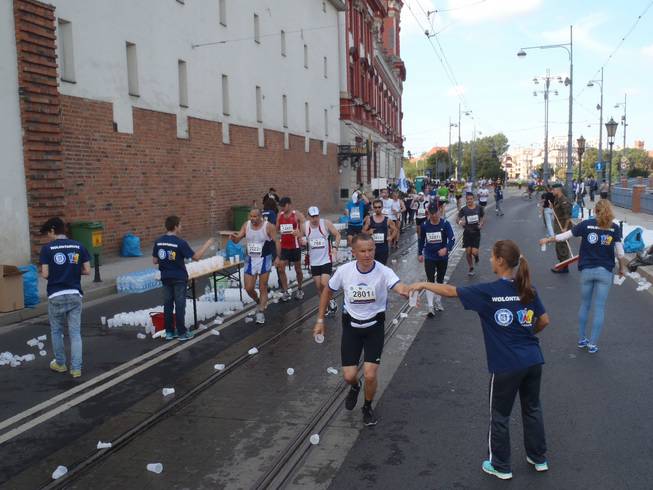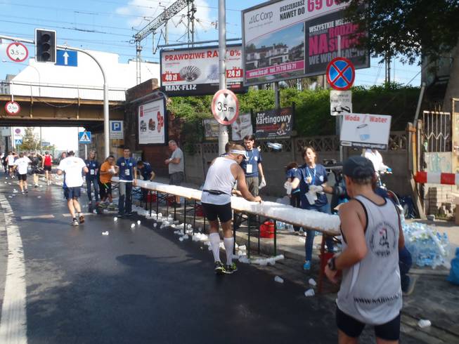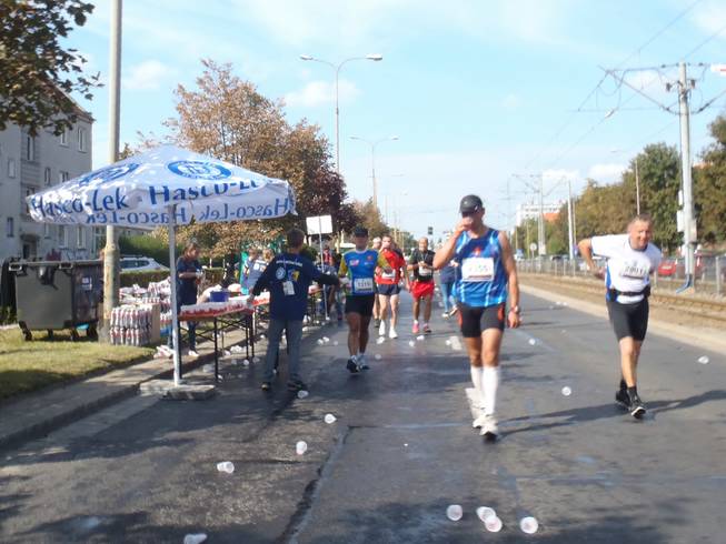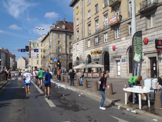 Grodzka 12.22 Uhr / Km 37,7 Der vorletzte Verpflegungs-stand auf der Strecke. An jenem Tag hatte ich nicht so viele Durst-Probleme wie bei vielen anderen Marathons in Jahr 2012. Vielleicht hatte ich mit all den vielen anderen Gedanken im Kopf auch einfach nur vergessen, daß ich durstig war. |