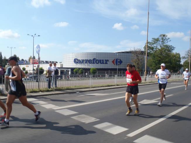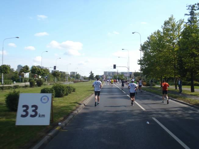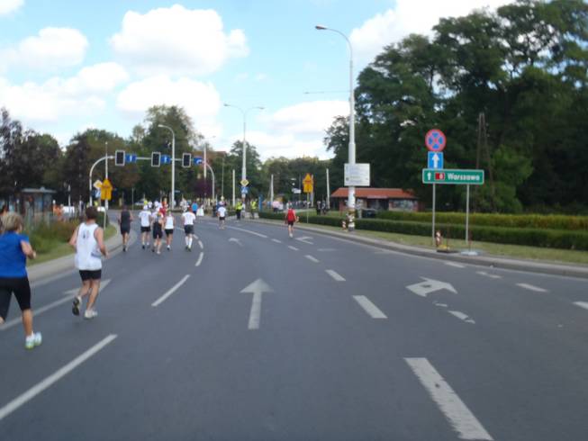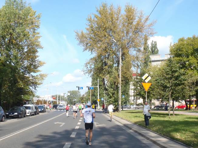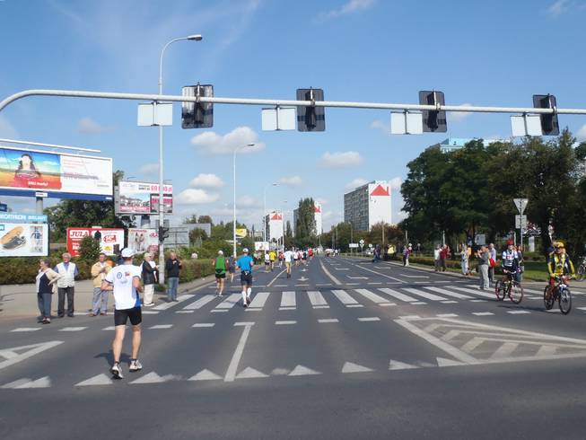Aleja Armii Krajowei 11.57 Uhr / Km 33,0 33 Km und immer noch unter drei Stunden. Auch wenn ich die letzten Km ein wenig gemütlicher angegangen war lag ich zeitlich immer noch gut im Rennen. |