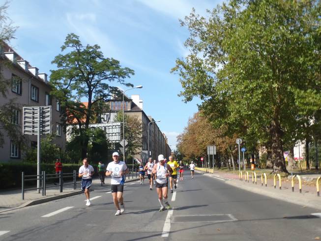Henryka Sienkiewicza 12.31 Uhr / Km 39,4 Ich lief jetzt locker Richtung Ziel. Unter 3:50 Stunden war mir praktisch sicher. Unter vier Stunden sowieso. Und so hatte ich zeitlich nichts mehr zu gewinnen. Jetzt konnte ich es austrudeln lassen.