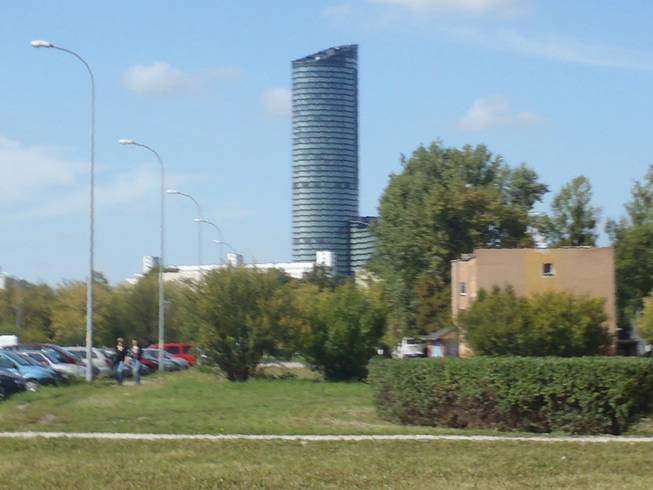 Borowska 12.04 Uhr / Km 34,3 Der Wrocław Sky Tower. Da stand mal Poltegor (klingt doch viel polnischer), das 1982 erbaute höchste Haus von Wrocław (92 Meter). Das wurde dann 2007 abgerissen und durch den Sky Tower ersetzt. Der soll 2013 fertig sein, hat aber statt der ursprünglich geplanten 258 Meter nur 205 Meter Höhe (ohne Antenne, die aber nur sieben Meter mitß). Ist dann aber immer noch das höchste Bauwerk von Wrocław und das höchste Wohngebäude in der EU. |