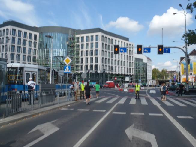Generała Józefa Hallera 11.38 Uhr / Km 29,3 Dafür, daß am Vortag noch von einer gewissen Chance auf Regen geredet wurde, war es doch sehr schönes Wetter. Und so sonnig. |