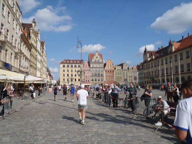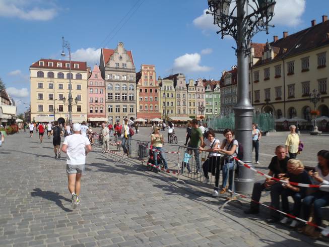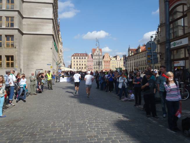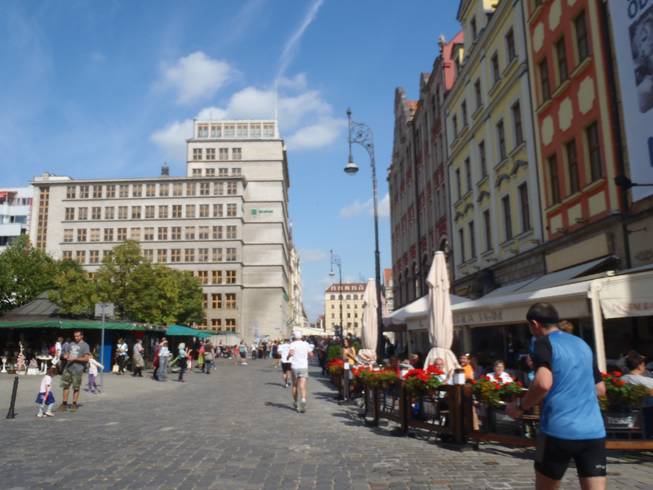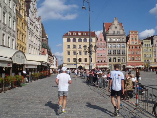 Eugeniusza Gepperta / plac Solny 12.16 Uhr / Km 36,7 Nun wartete mit dem Lauf über den Rynek (dem zentralen Marktplatz von Wrocław) schon das nächste Highlight. |
