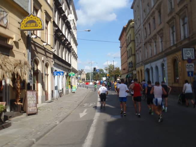 Grodzka 12.21 Uhr / Km 37,5 Auf der linken Seite hinter der Mauer fließt die Oder. War aber von der Straßen aus leider nicht viel zu sehen. Aber in meinem Foto-Archiv von Wrocław gibt es noch genug Fluß-Bilder. |