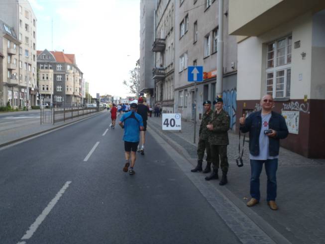 Henryka Sienkiewicza 12.35 Uhr / Km 40,0 3:34:37 Stunden auf der Uhr. Also 54:25 Minuten für die vierten zehn Km. Das war ein wenig langsamer als im Mittelteil, aber immer noch recht flott. |