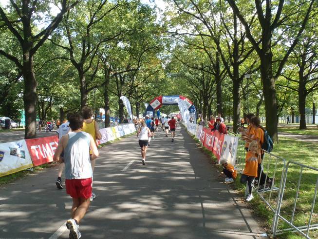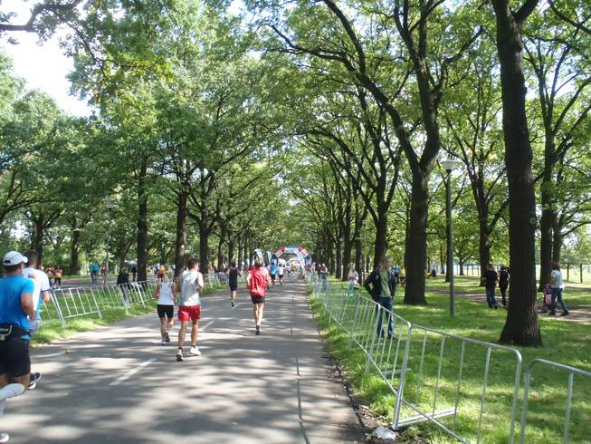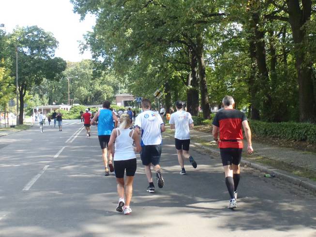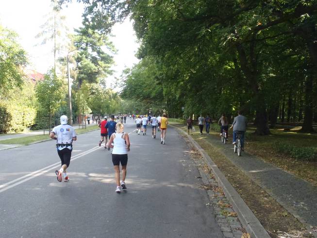 Wrocław Stadion Olimpijski 12.45 Uhr / Km 41,9 So eine Allee zum Schluß hat doch etwas. In ein Stadion zu laufen ist natürlich noch schöner, aber man kann ja nicht immer alles haben. |