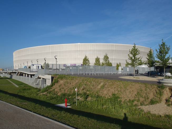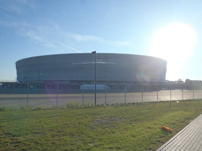 Stadion Wrocław Näher ans Stadion kam ich nicht ran. Läufer sind in Polen halt grundsätzlich verdächtig und dann noch ein Ausländer um 6.53 Uhr... naja... da wäre ich auch skeptisch geworden. :-) |