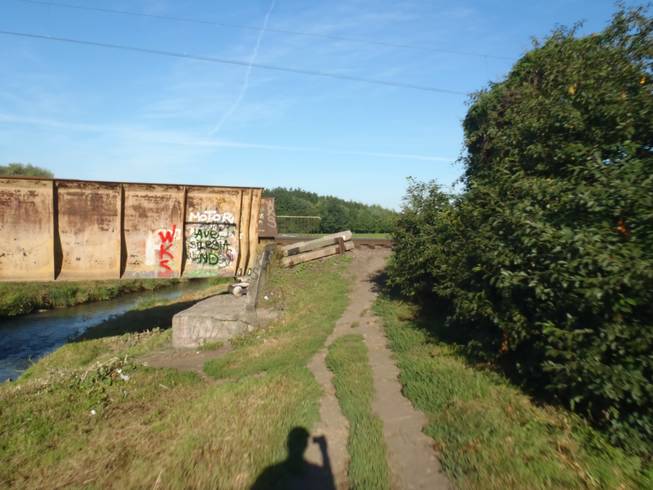Entlang der Ślęza / Nowy Dwór Hier kam man ganz ohne große Umstände über die Bahngleise. |