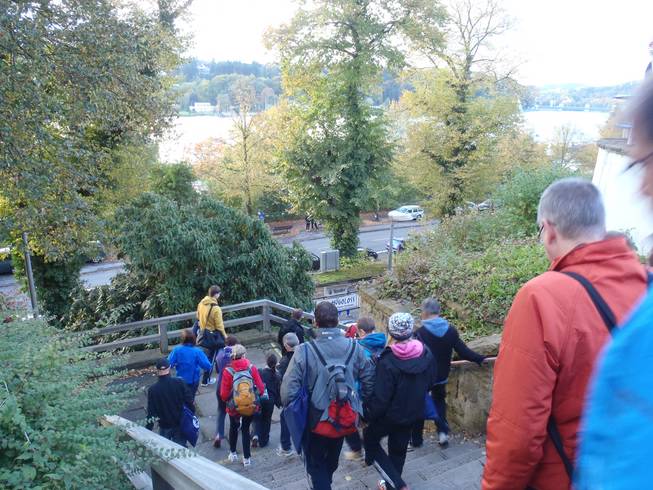 Essen-Hügel 8.59 Uhr Anmarsch der Läufer von Bahnhof Essen-Hügel. |