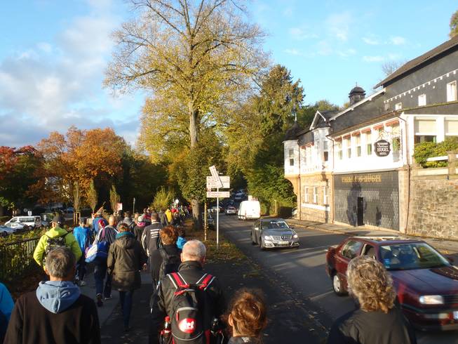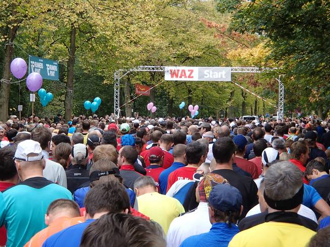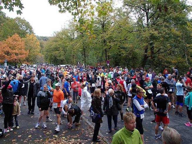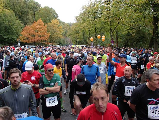Essen-Hügel 9.43 Uhr Der Weg zum Start war gut ausgeschildert. Man hätte aber gerne dazuschreiben dürfen, wie weit es noch bis zum Start wäre. Das zog sich nämlich ziemlich in die Länge. |