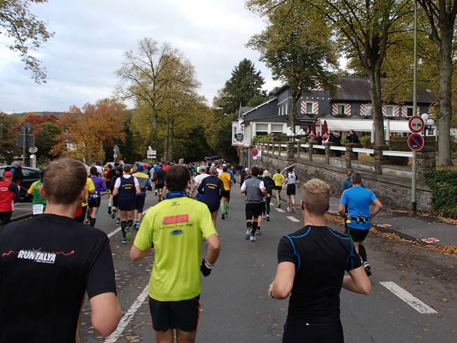 Freiherr-von-Stein-Straße 10.13 Uhr / Km 2,0 Nach den ersten Hügeln kam ich allmählich ins regelmäßige Laufen. 2012 hatte ich 16 Marathons in Reihe unter vier Stunden geschafft (der Rennsteiglauf zählt hier nicht). Die Serie sollte halten. |