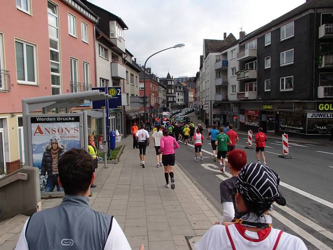 Brückstraße 10.20 Uhr / Km 3,3 Weiter ging es durch Essen-Werden. Ziemlich bergab ging das hier. Hat sich was mit flach. |