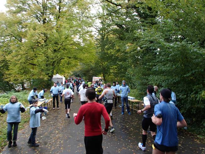 Hardenbergufer 10.36 Uhr / Km 6,0 Um den Kurs herum gab es vier Verpflegungsstellen. Macht bei zwei Runden also achtmal Verpflegung. Nicht gerade viel, aber immerhin. An diesem Stand lobten man übrigens Bier aus... für die Runde Drei. :-) |