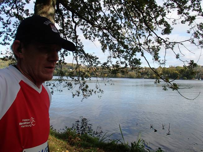 Hardenbergufer 10.35 Uhr / Km 6,0 So hatte ich mir den Lauf vorgestellt. Einer Seite der See, andere Seite der Wald (oder so etwas) und in der Mitte eine flache Strecke zum Laufen. |