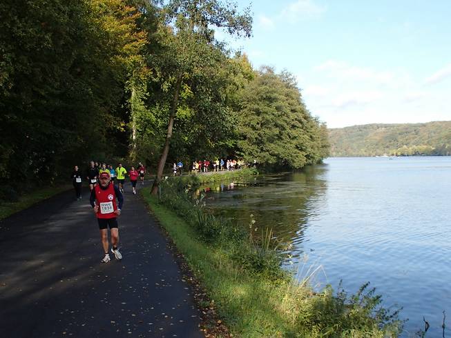Hardenbergufer 10.51 Uhr / Km 9,0 Die Strecke am See zog sich in die Länge. Ok, 7,8 Km Stausee sind nun einmal 7,8 Kilometer lang. |