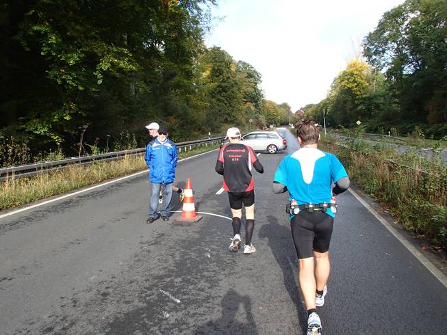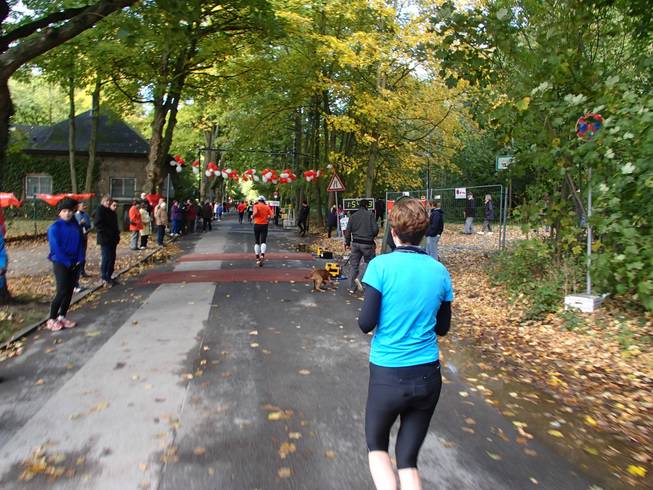 Wuppertaler Straße 11.24 Uhr / Km 15,0 Wendepunkt. Puh. Die Hälfte wäre geschafft. |