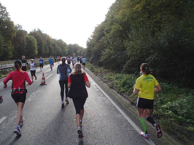 Hardenbergufer 10.35 Uhr / Km 6,0 Das sah doch noch ganz gut aus. Zumindest hatte ich mich warmgelaufen. Foto: