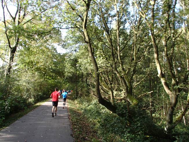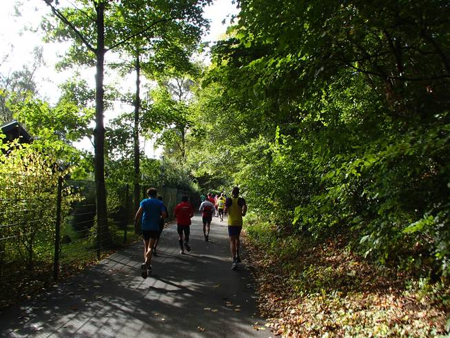Freiherr-von-Stein-Straße 10.09 Uhr / Km 1,5 Und vom See war nichts zu sehen. Dafür liefen wir durch einen hübschen Wald. |