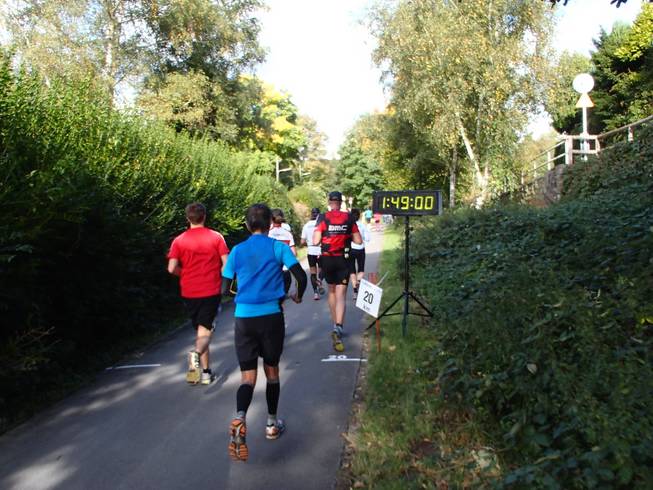 Obere Aue 11.50 Uhr / Km 20,0 1:48:17 Stunden bei Km 20. Machte 53:29 Minuten für die zweiten 10 Km. Das lief doch super. |