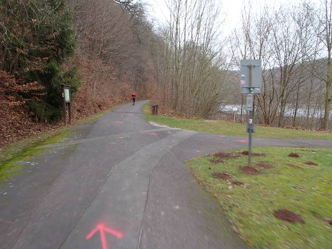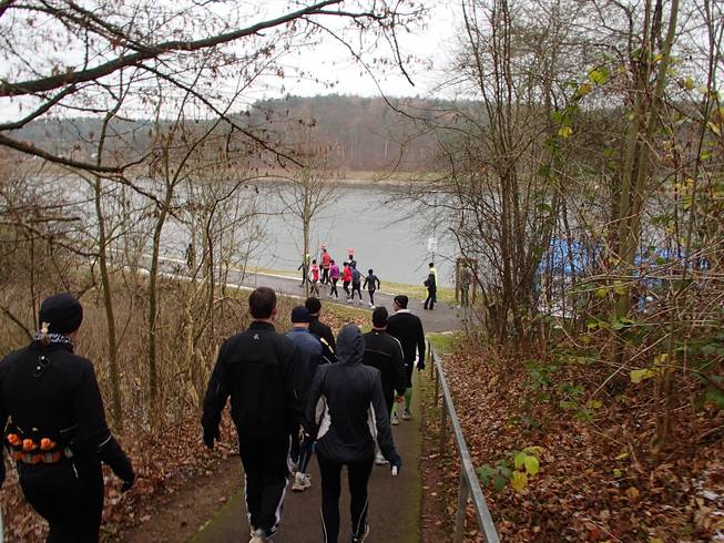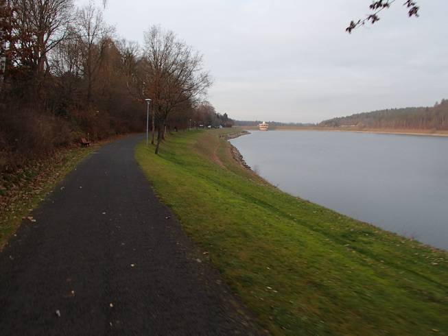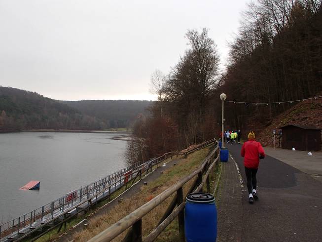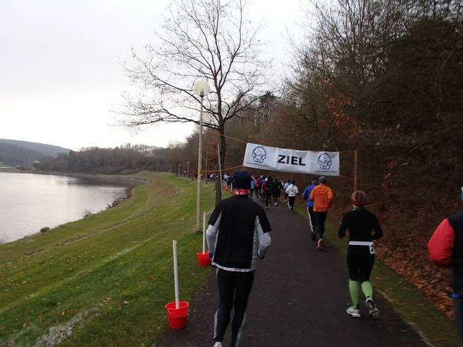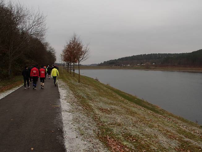 Twistesee 11.00 Uhr / Km 0,01 Es war trocken, um die Null Grad und schwachwindig. Für Anfang Dezember also prima Laufwetter. |