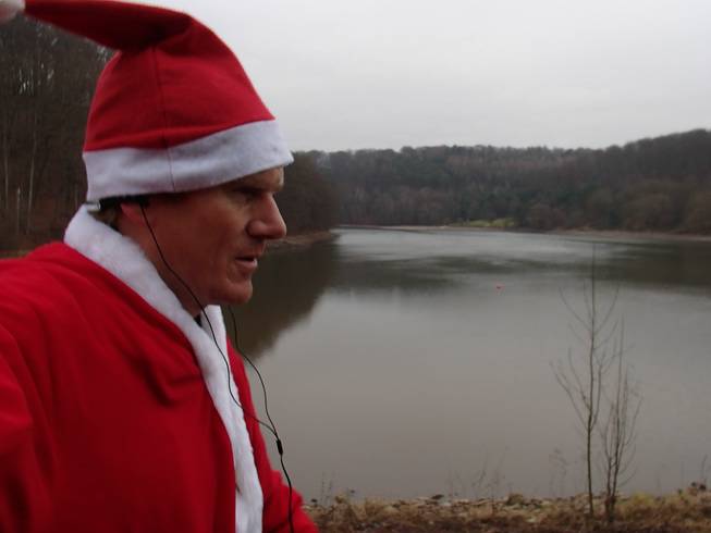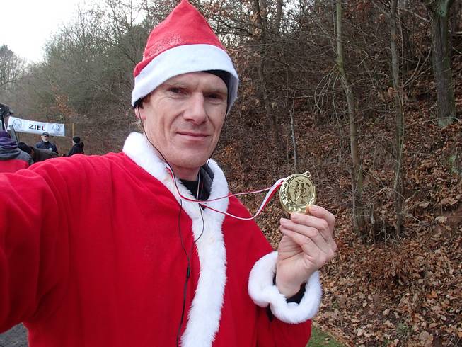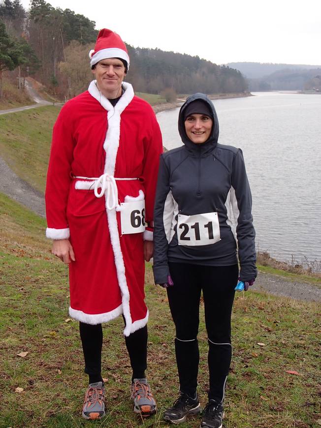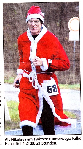 Twistesee 10.58 Uhr Während im Hintergrund schon der Countdown zum Start lief, wollten noch so einige Leute schnell ein Foto mit mir als Nikolaus haben. |