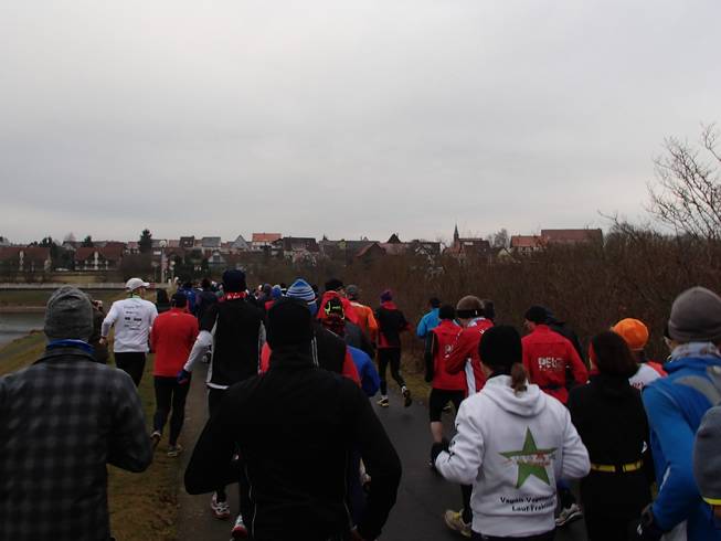 Langenwald 12.04 Uhr / Km 12,0 Da sah ich noch ganz gut aus. An der Mütze war kein Schnee, nur Wasser. So kalt war es dann doch nicht. |